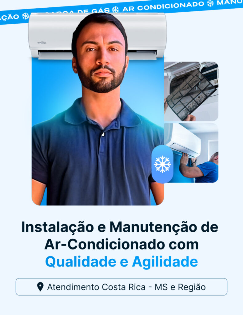 Somos especialistas em instalação, limpeza e manutenção de ar-condicionado residencial em Costa Rica – MS.